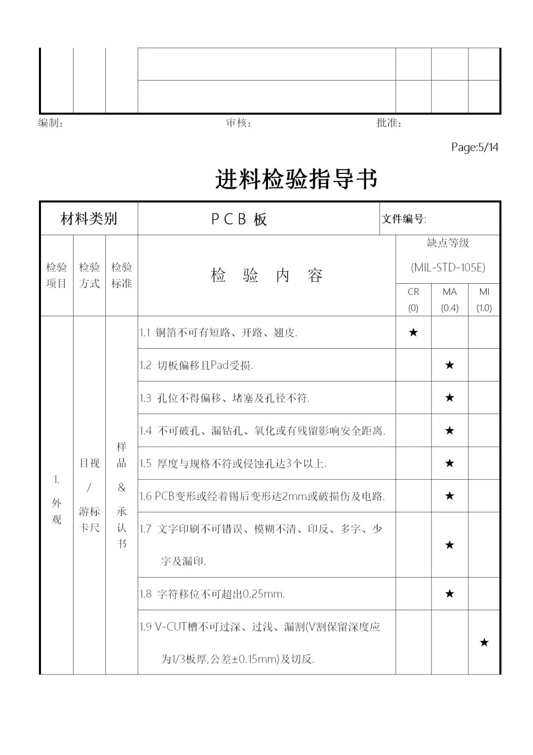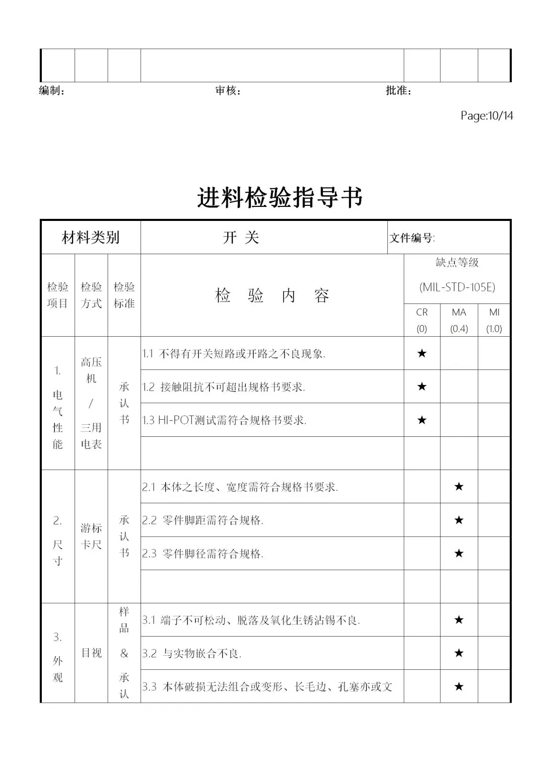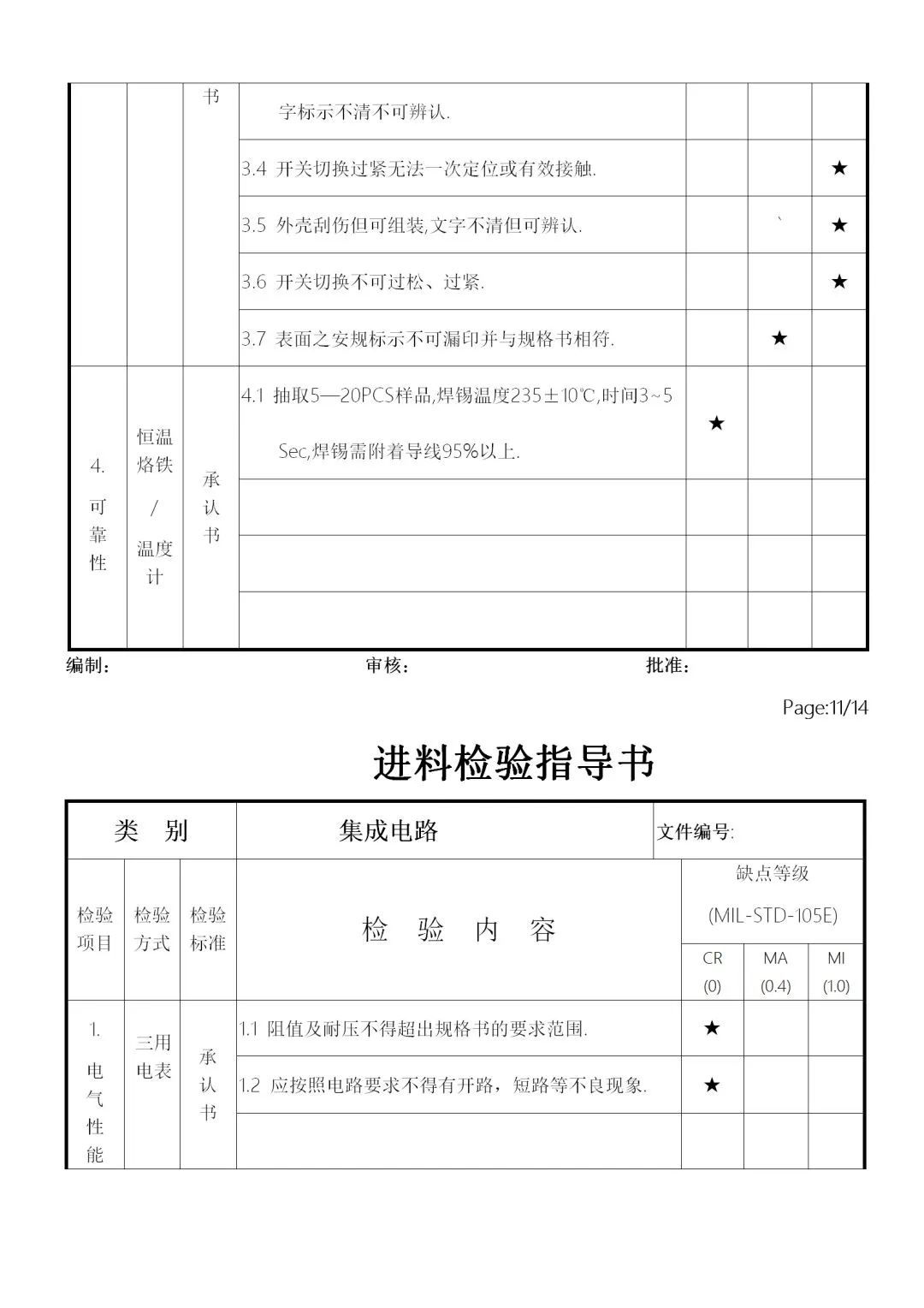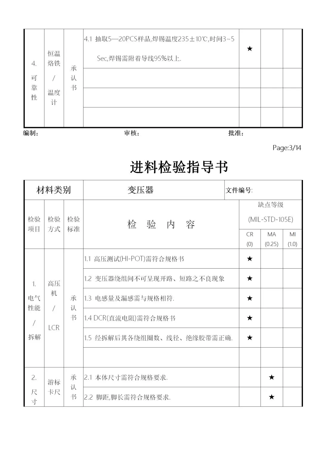 c. 受检验人员个性的影响,性了急的人在判定上容易主观,因此要注意客观公正。如不合格批放到制程,发生原材料问题,首先追究的是IQC人员责任。