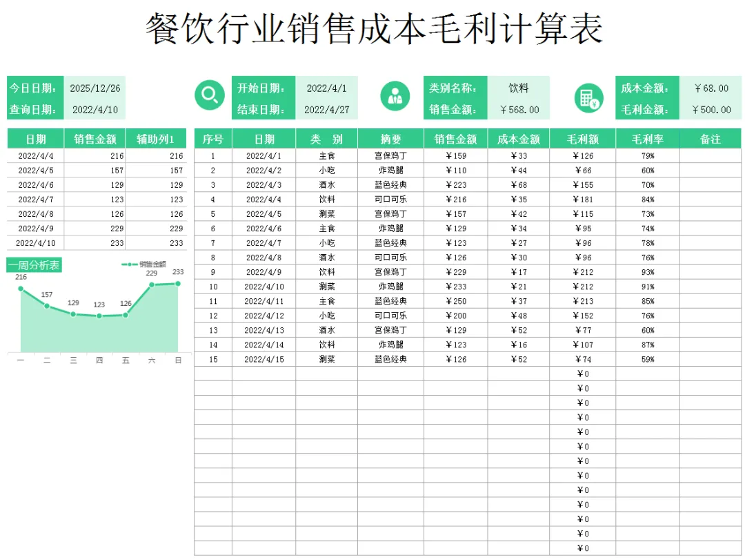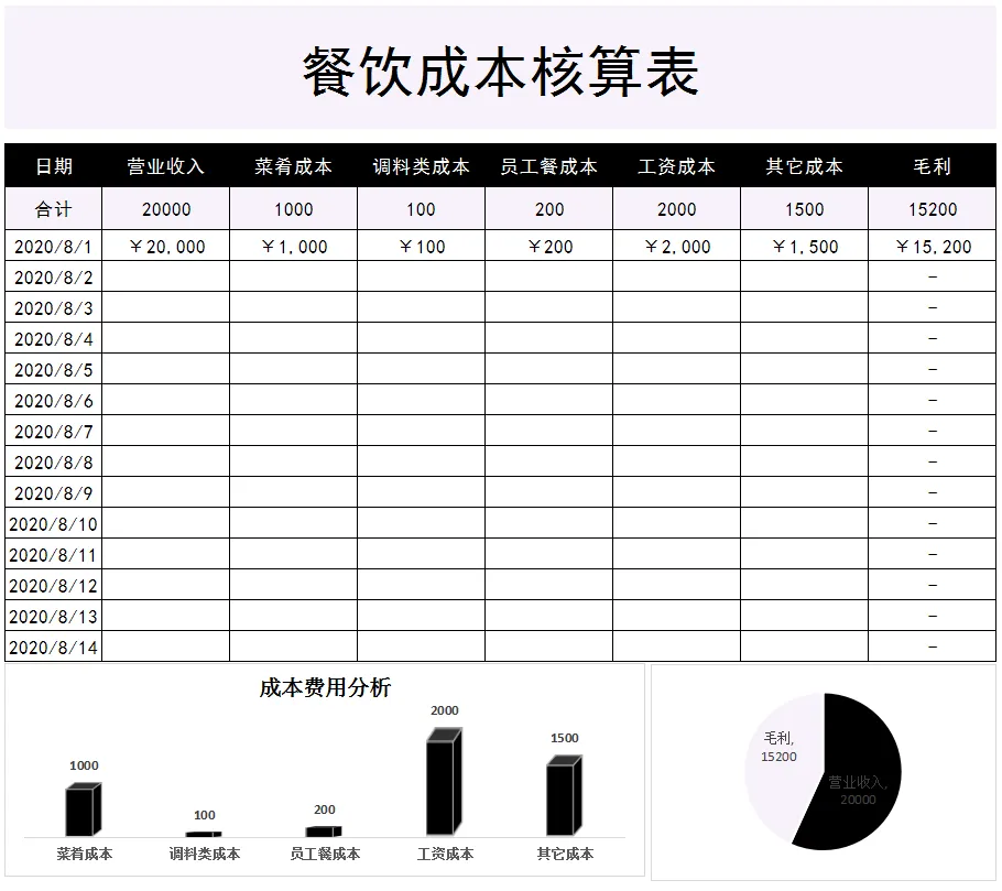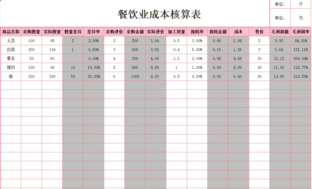 做餐饮会计,最发愁的就是算不清成本,每份菜品赚了多少钱,每月损耗到底有多少,一堆数据烦的人头大。今天小编给大家分享这一套餐饮成本核算分析常用表格模板,有了这一套,搞定成本核算没有那么难!不需要懂复杂的算法,填数据就能自动汇总结果,食材、人工、损耗一目了然,帮你轻松把账算明白~