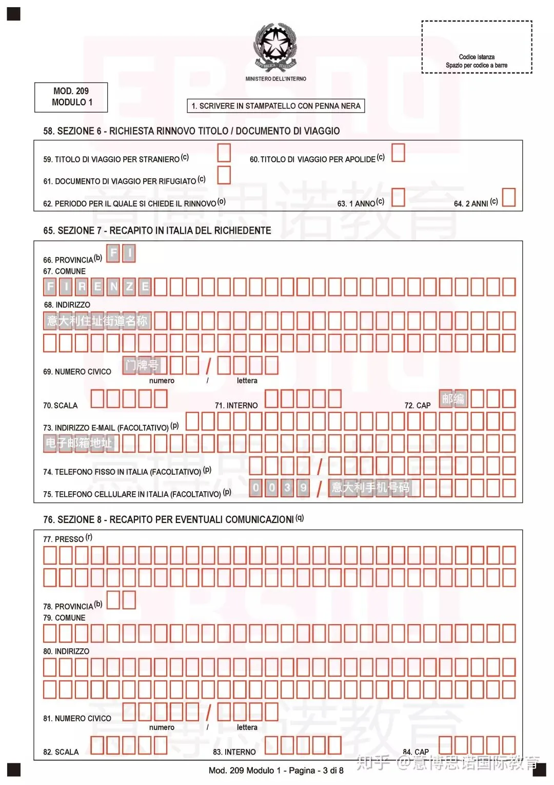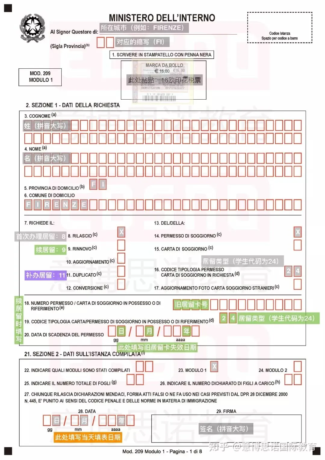 必须在到达意大利的8天内进行居留许可的办理申请
