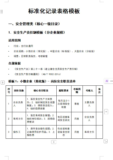 >标准化记录表格模板