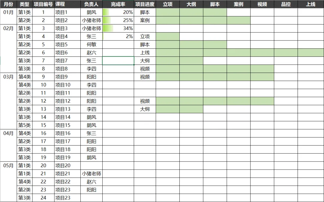 项目进度表: