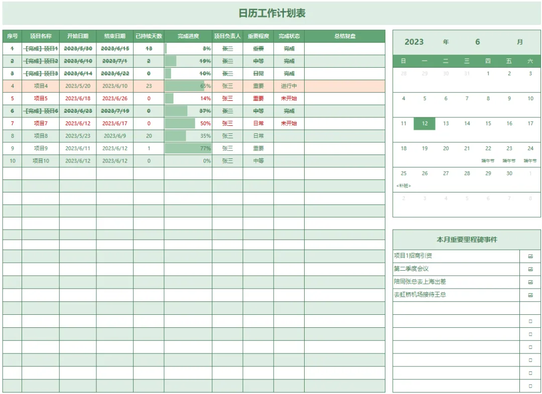 一个简单实用的工作计划表模板,一张纸就能管理所有的工作任务。