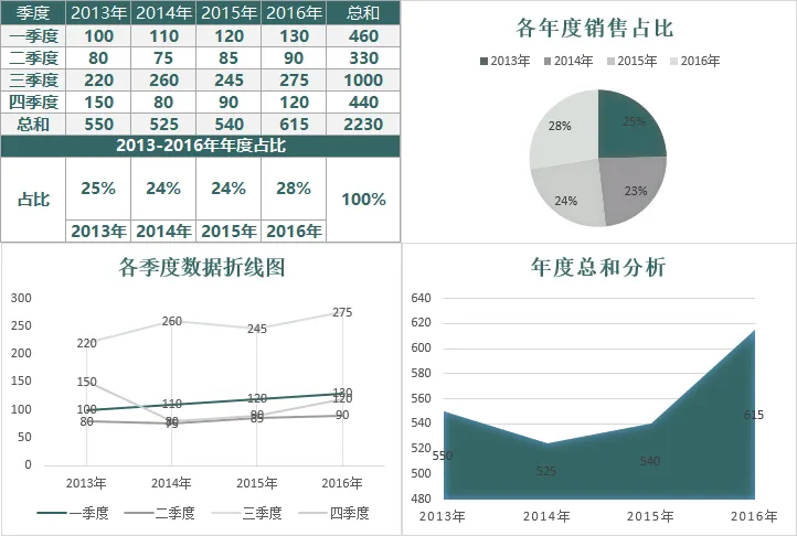 企业年度季度数据分析表: