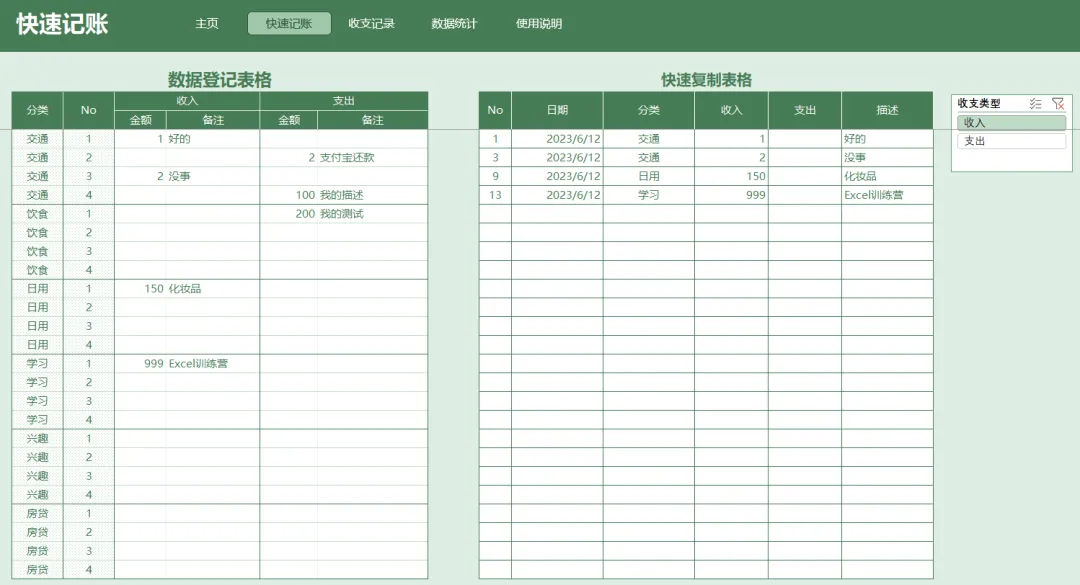 记账表: