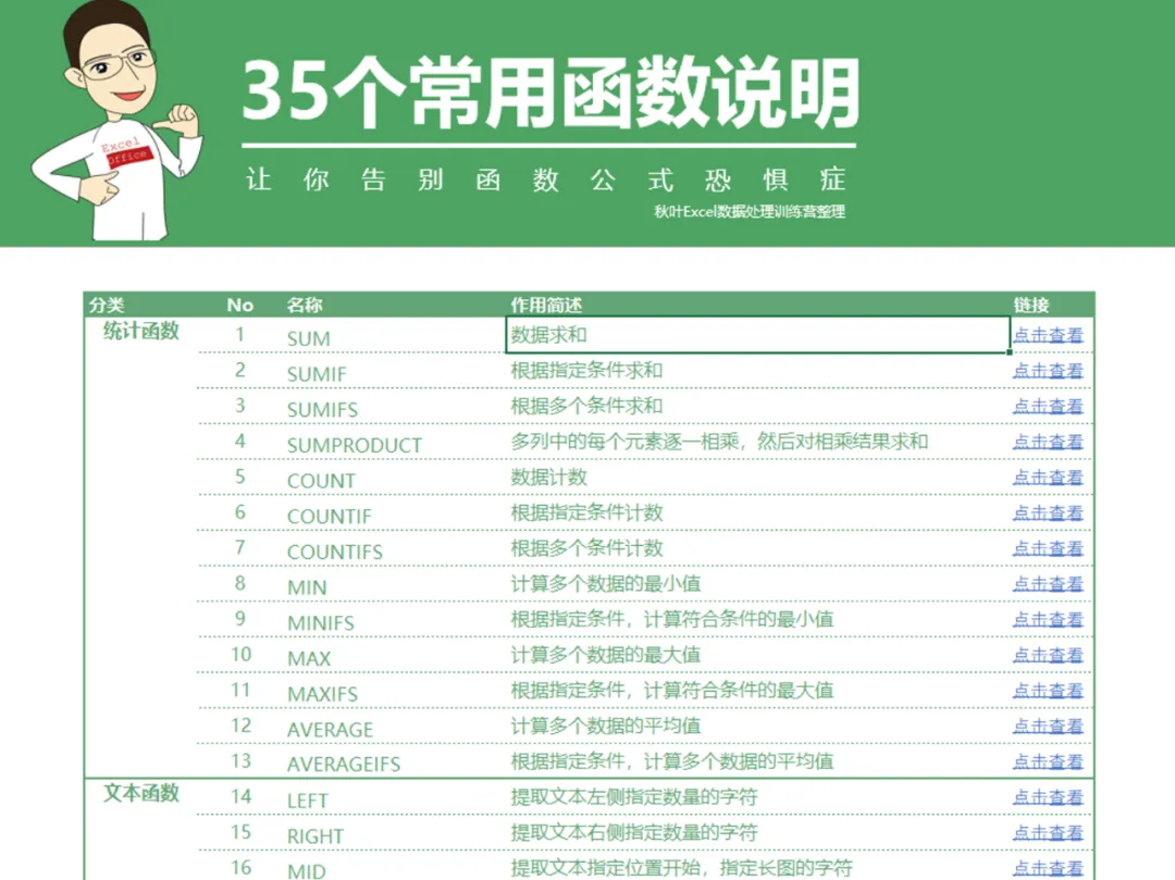 福利一:《35 个常用函数说明》