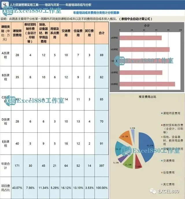 年度培训成本费用分类统计分析图表