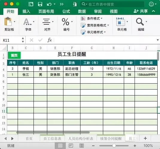 对于有员工生日福利的企业,这张表就很有作用了,会自动提取即将生日的员工名单,帮助HR提前做好安排。