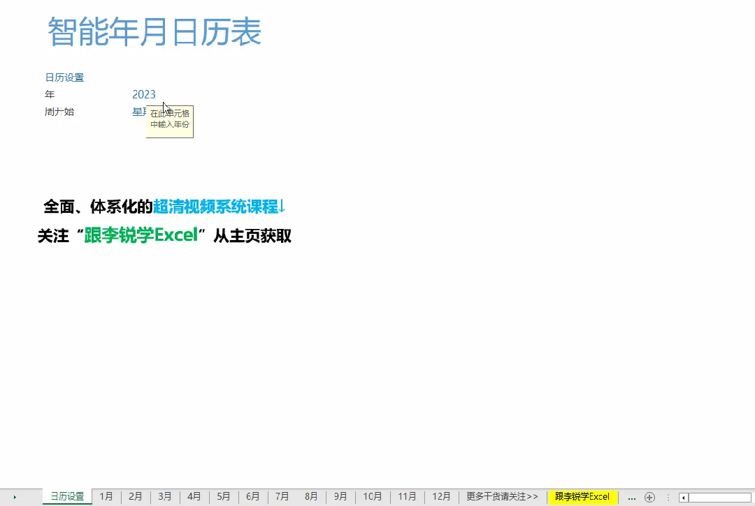 今天介绍的案例:【Excel模板】智能年月日历表模板。