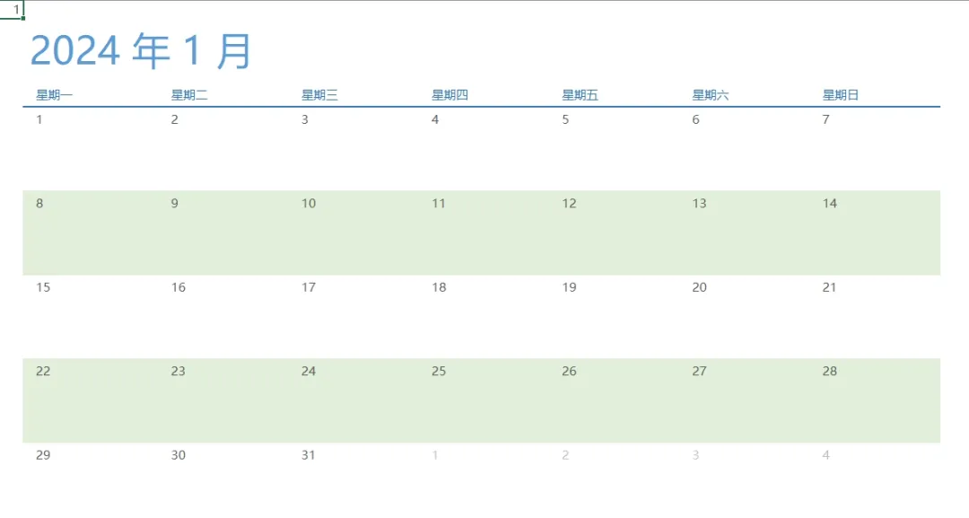 智能日历表可以按输入的年份自动生成全年日历,比如将年份从2023改为2024,即可查看2024年全年日历。