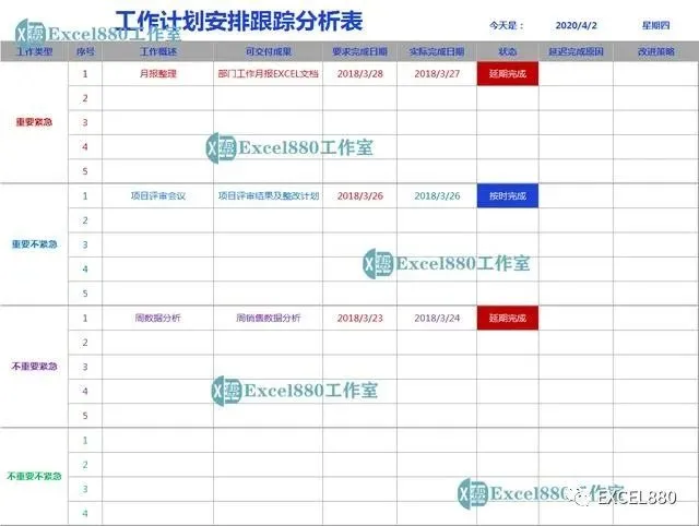 状态可下拉选择:提前完成,按时完成,延期完成,分为三种颜色,更方便自省。
