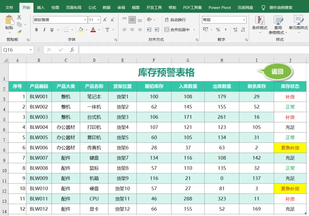 库存预警:根据数据自动设置库存状态。
