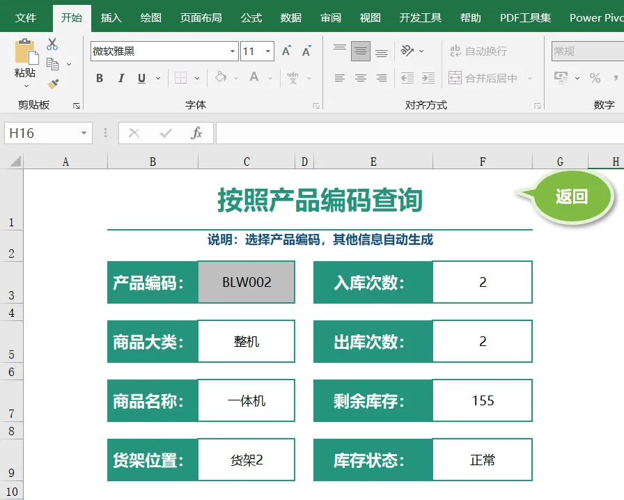 库存查询:根据产品编码自动获取数据。