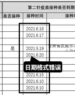 表格中还有一个不太好的数据习惯,就是第2针接种时间的公式,都写成了2021.6.10的格式。