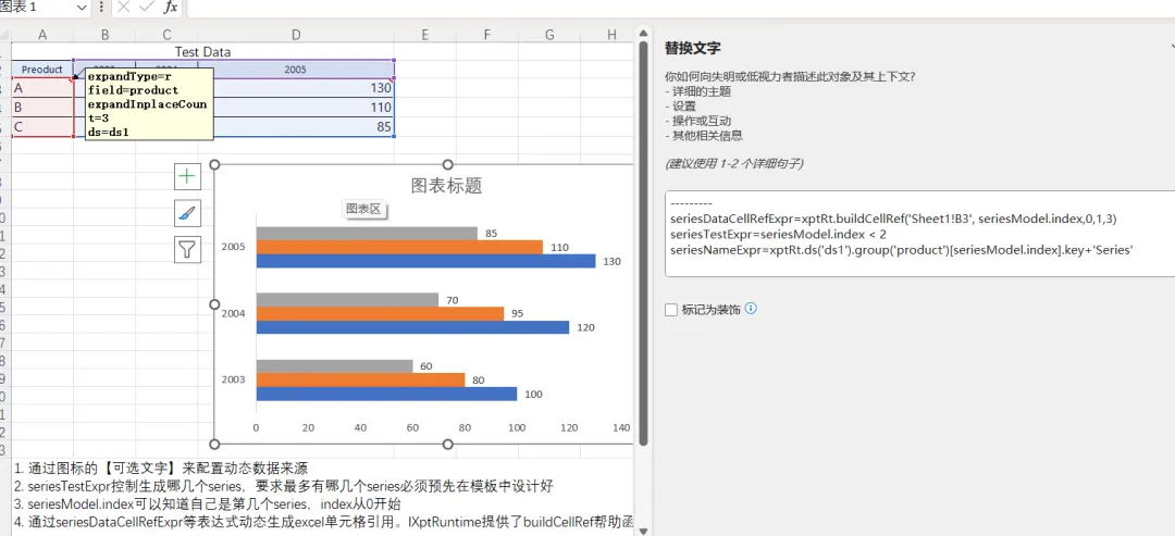 右键点击图表,选择"编辑可选文字",输入以下配置: