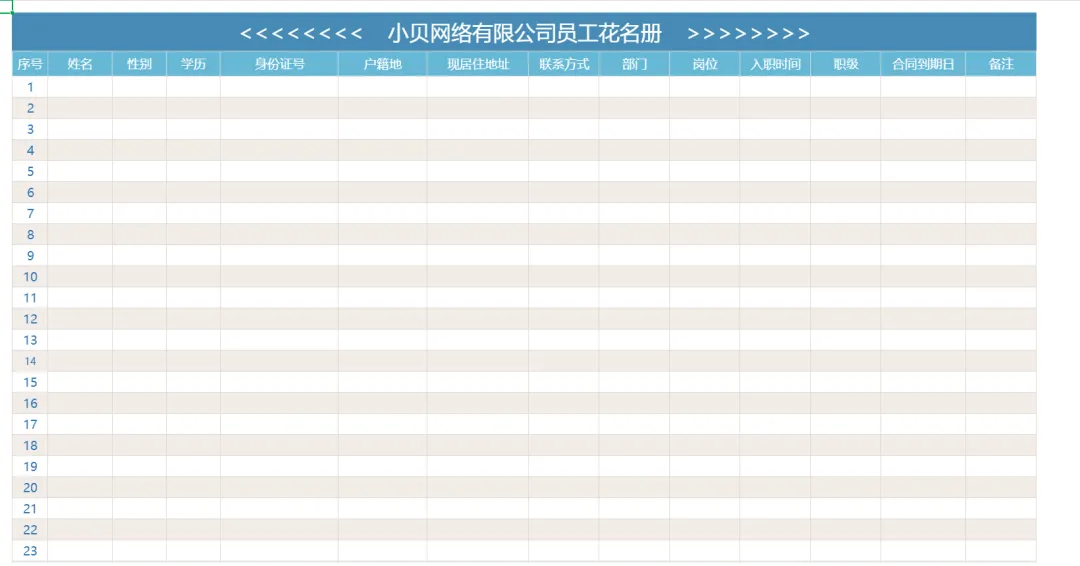 >【工作】员工花名册模板(excel电子版)网盘免费下载