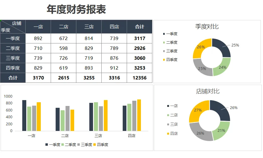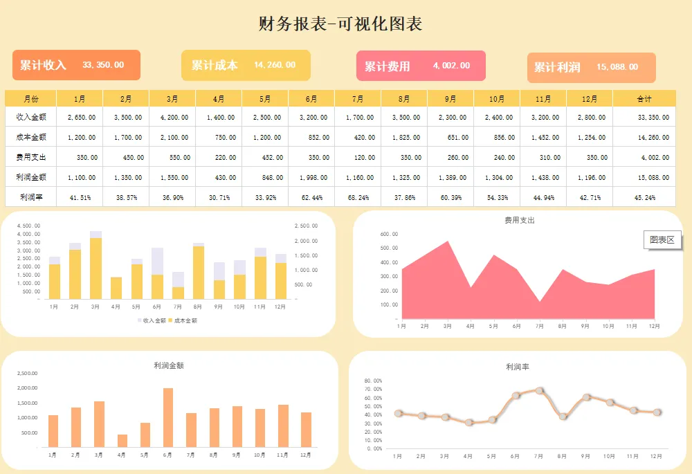 年终利润分析报表模板(通用版),带公式,套用自动生成可视化利润表分析图形