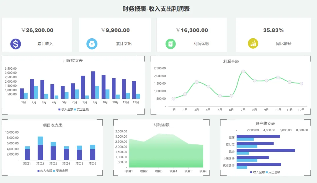 财务收支表格模板(自带公式 图表分析)可直接套用
