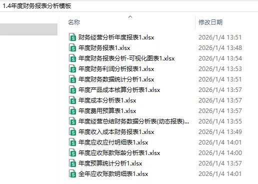 年度财务报表模板!含年度收入成本分析表模板、年度应收账款账龄分析表、年度收支明细表模板、年度经营数据分析表模板、年度费用预算表等!