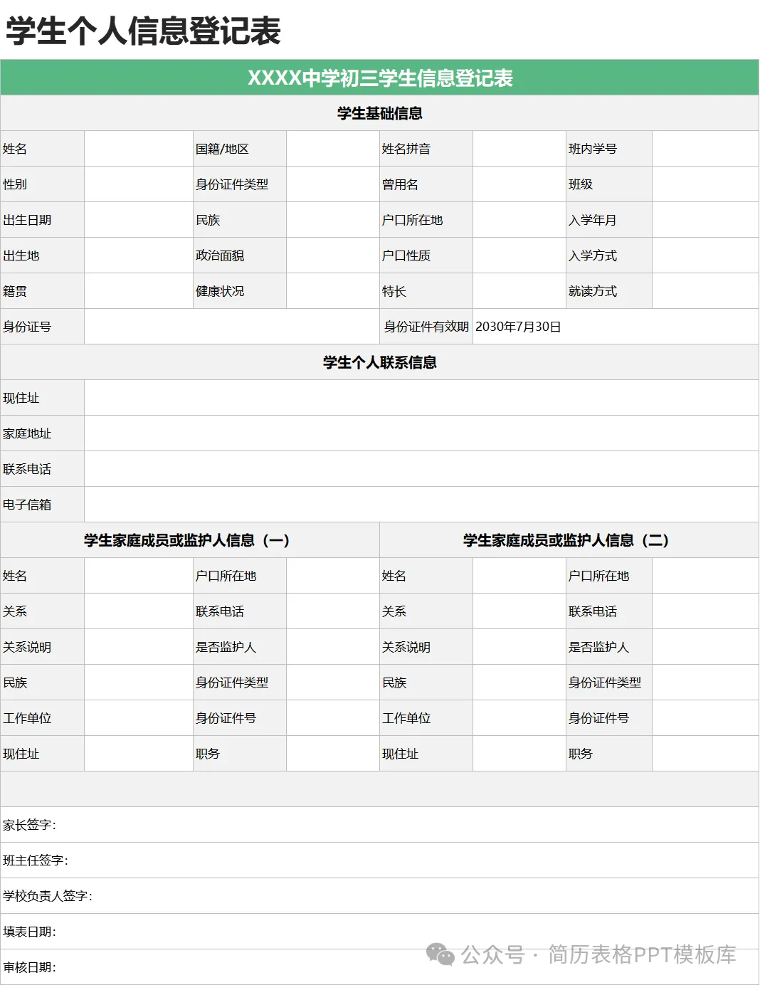 学生信息登记表