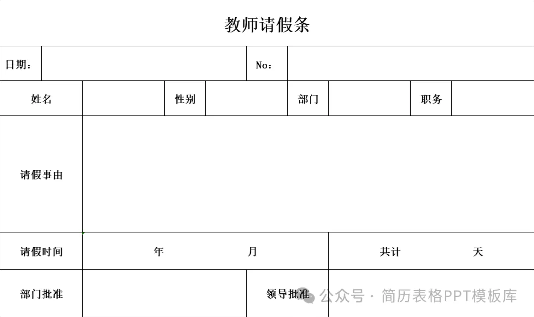 - 核心用途规范请假流程,留存出勤凭证,分为学生请假条和教师请假条两类。