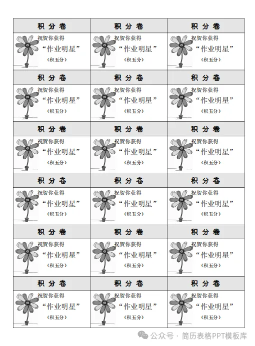 - 关键要素学生姓名、积分项目(作业完成、课堂发言、考勤纪律、助人为乐等)、加减分规则、积分累计、兑换奖励标准。