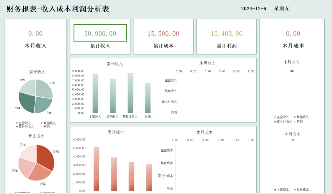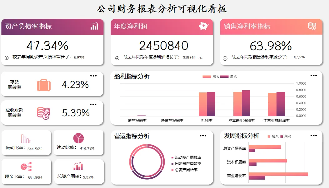 年终利润分析报表模板(通用版),带公式,套用自动生成可视化利润表分析图形