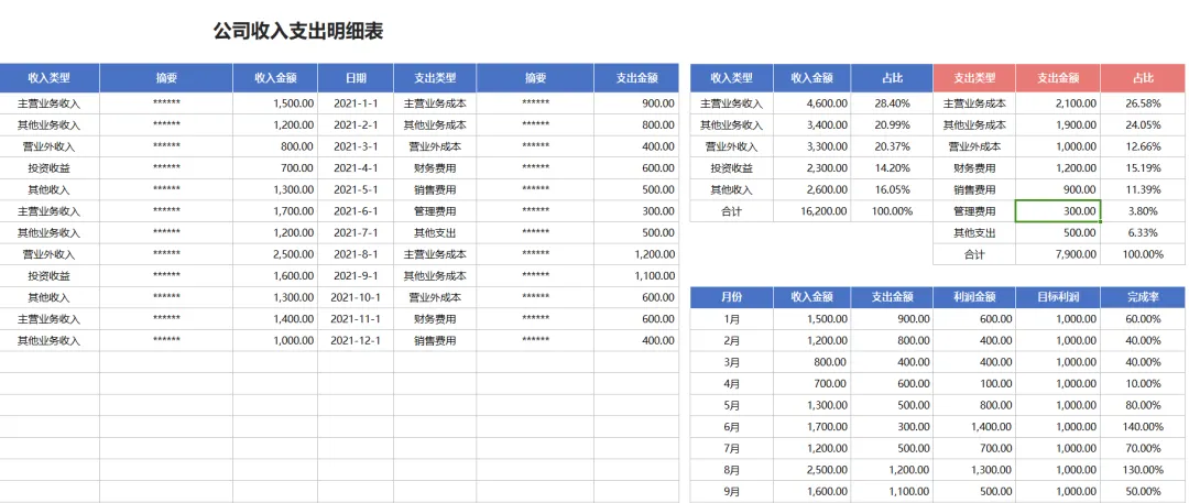 财务收支表格模板(自带公式 图表分析)可直接套用