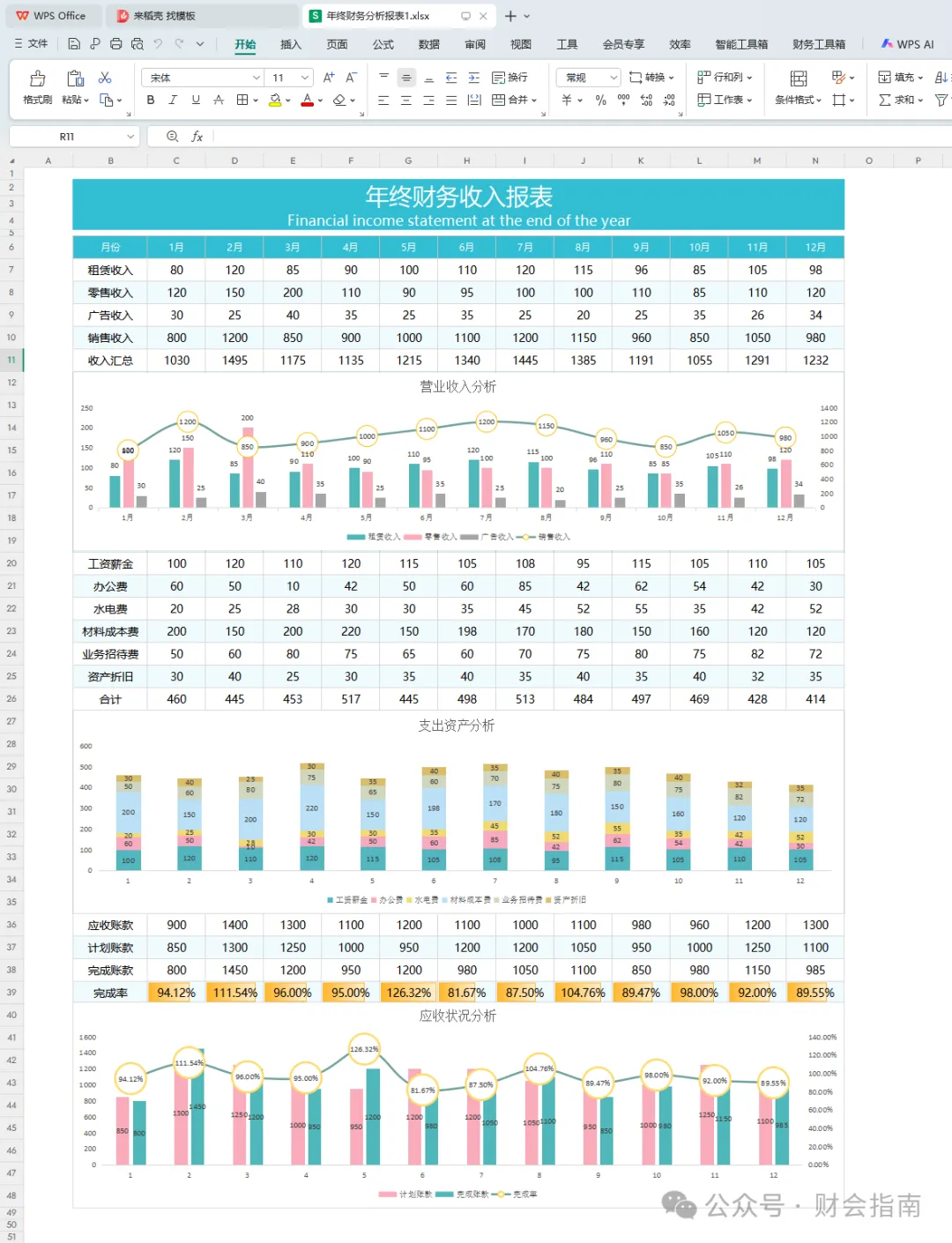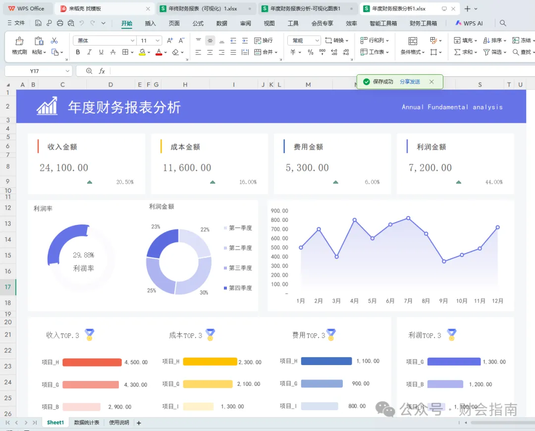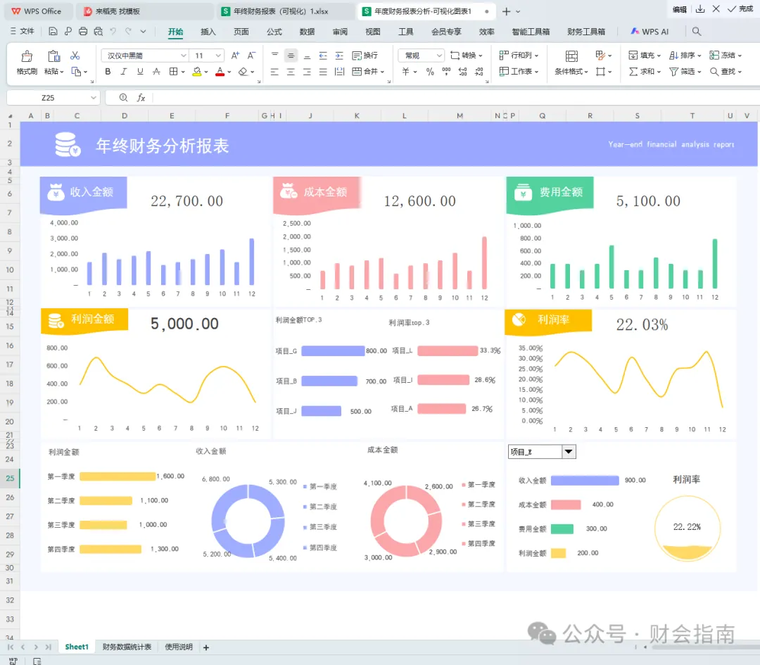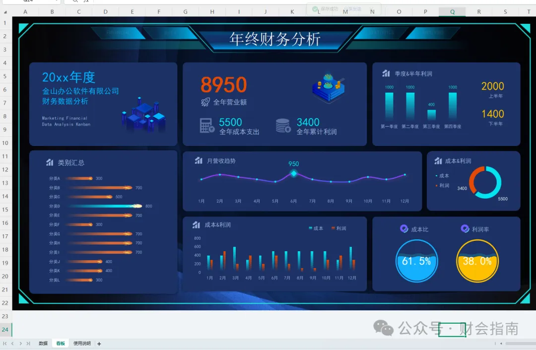 好了,看到这里,上述展示的就是财务人员年终常用到的可视化年终财务报表分析模板了,需要参考借鉴的财务人员,可以拿去直接套用。