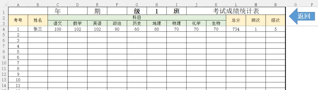 📌 模板亮点二:自动汇总与排名,一键生成年级榜单