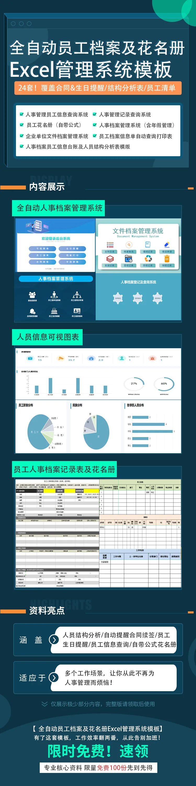 茅姐精心推出【全自动员工档案及花名册Excel管理系统模板】,可以提高HR的工作效率,规范员工管理信息使用!
