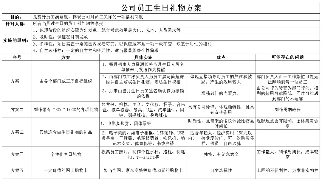 本资料为《某公司员工生日礼物方案(Excel模板)》,欢迎加入会员领取!