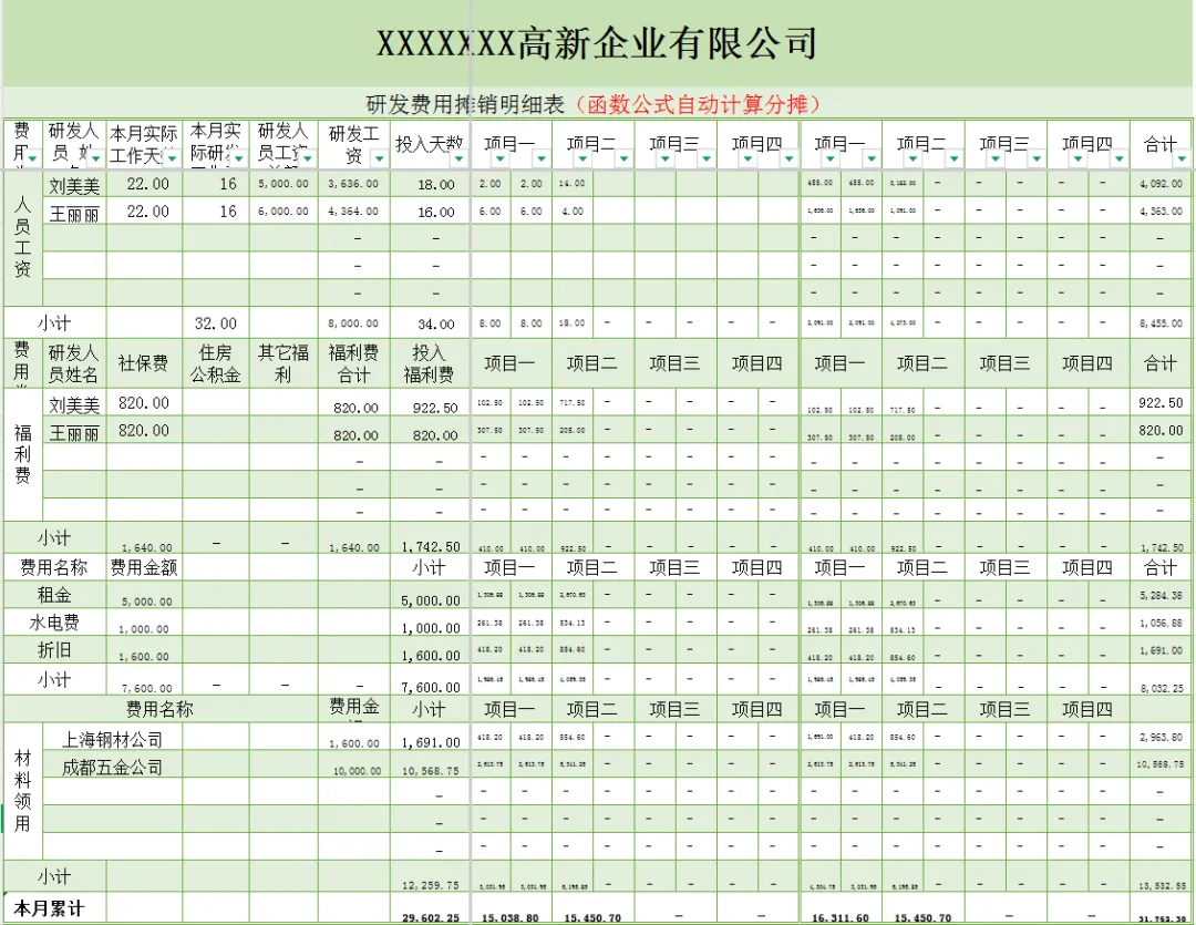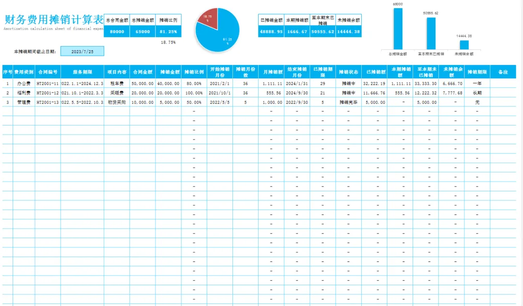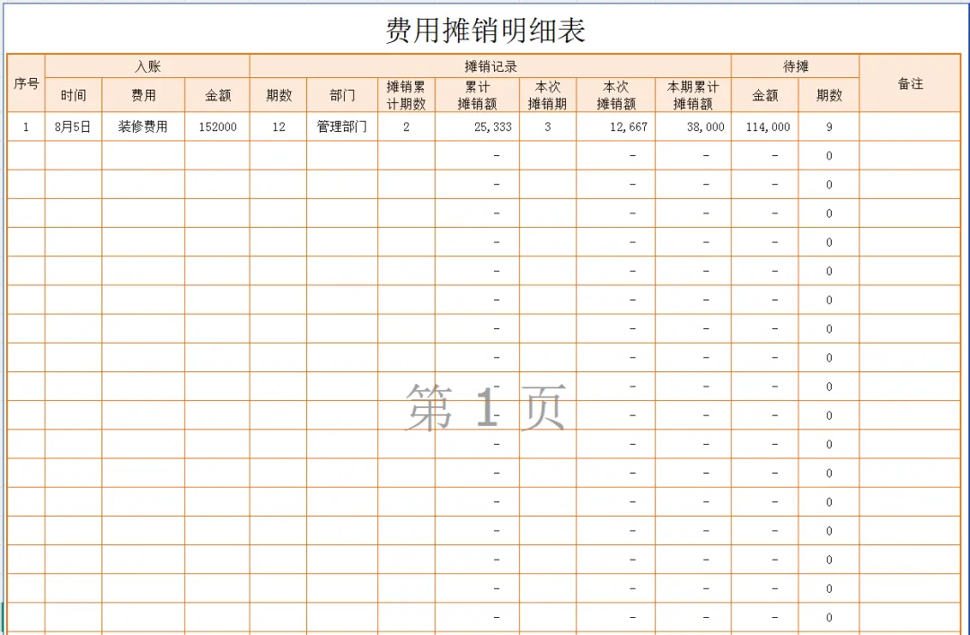 财务常用费用摊销表格模板
