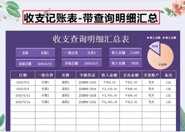 收支记账表—待查询明细汇总