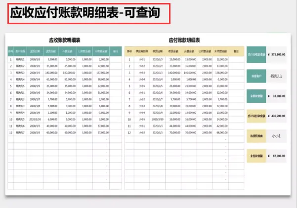 应收应付账款明细表—可查询