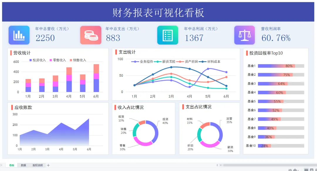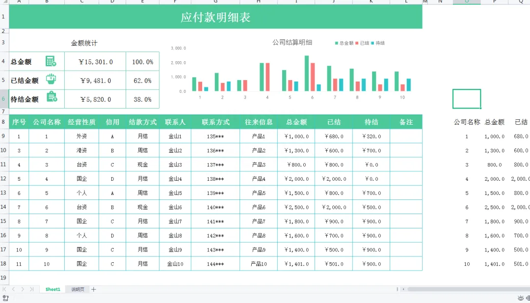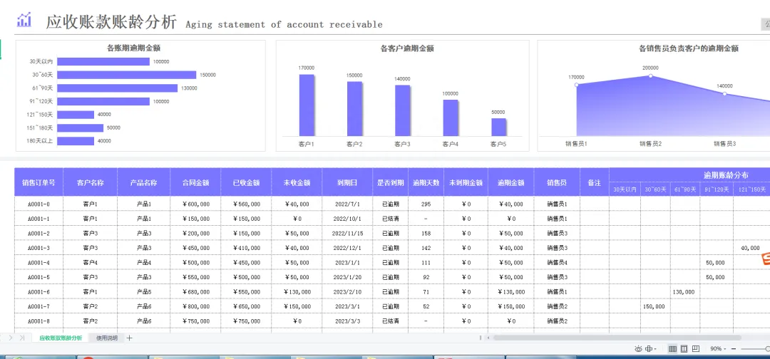 Excel模版:进销存管理,账龄分析,销售图表