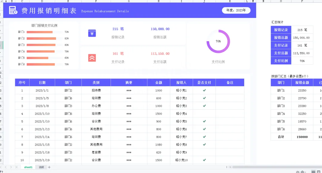 费用报销管理表格模板