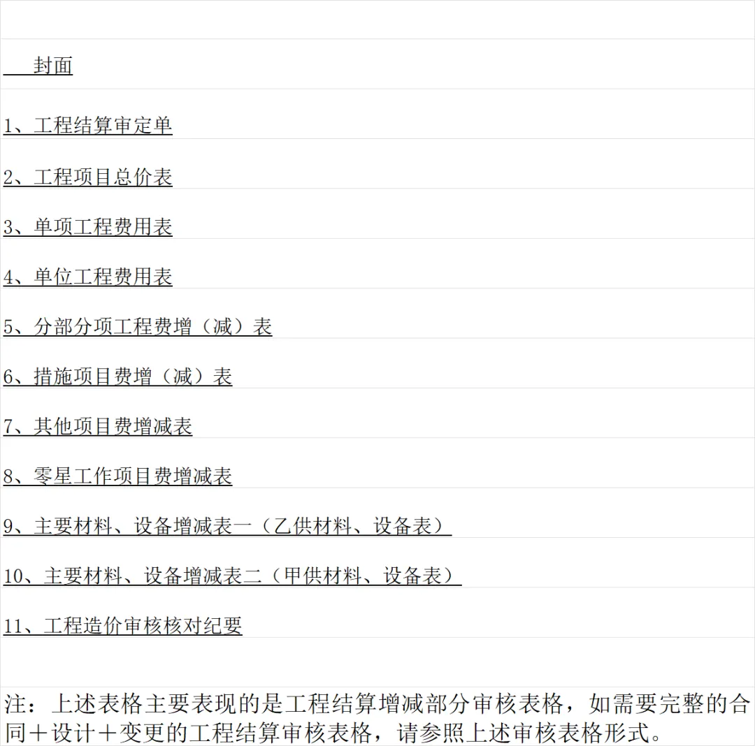 >【资料分享】建筑工程结算及审计报表模板