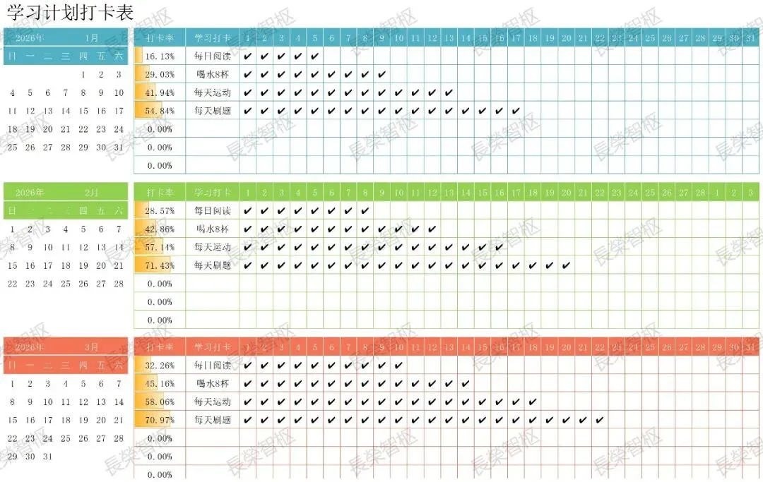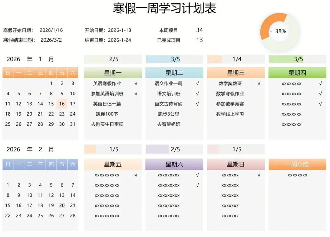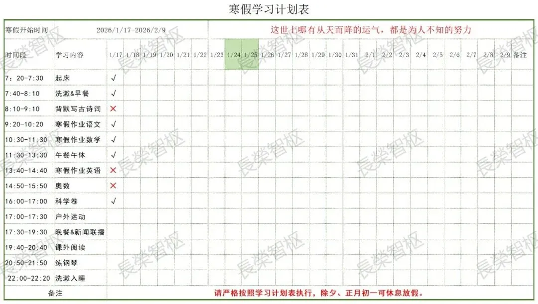 【Excel模板】【链接可直接下载】寒假学习学习计划打卡表时间规划表时间安排表8份