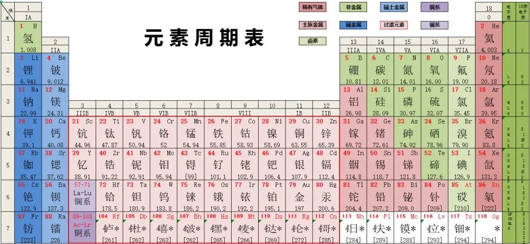 元素周期表电子版excel模板6套,部分内容预览如下,完整版下载方式见文末。