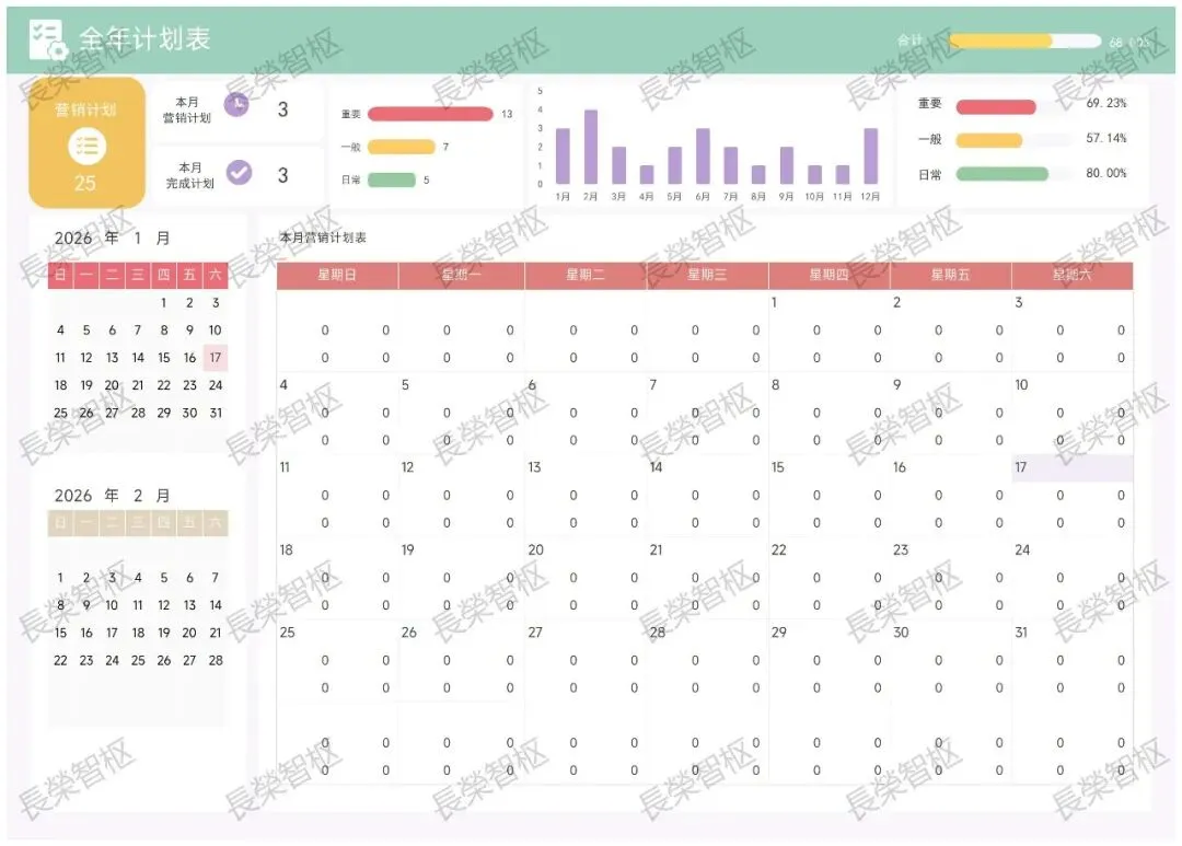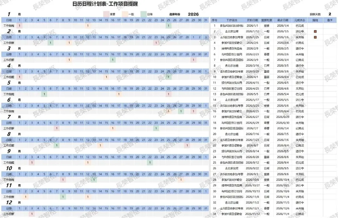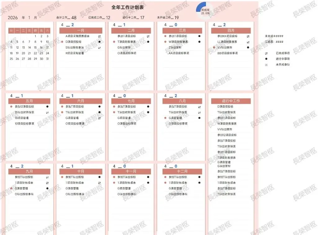 >【EXCEL模板】【链接可直接下载】年工作任务计划 生活学习计划表 计划清单管理 待办事项明细表 跟踪表 进度表