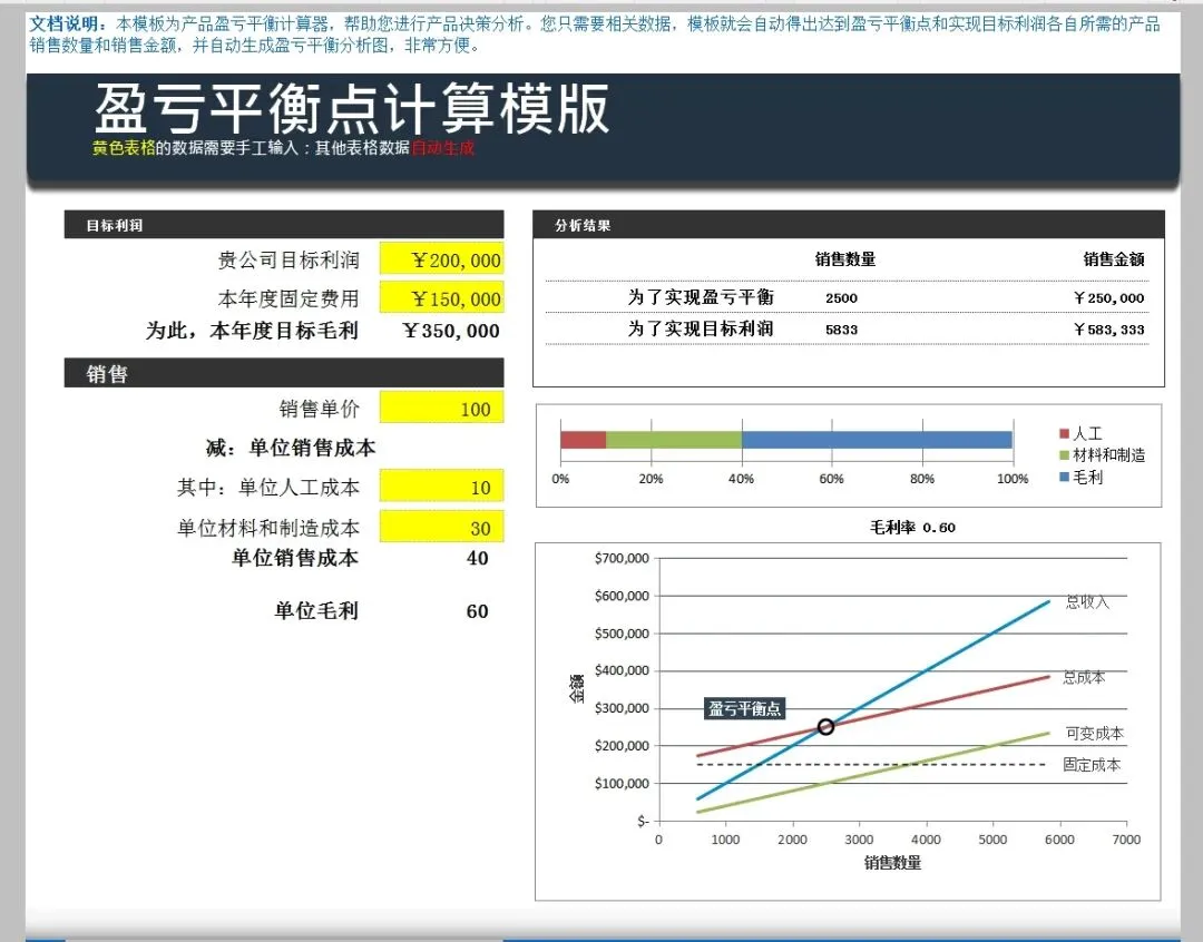 不管是开公司做经营还是做项目规划,大家肯定最关心的就是“什么时候能不亏钱”。但是一提到“盈亏平衡分析”不少人就害怕,觉得要算一堆数。今天小编就给大家分享盈亏平衡分析表格模板,不需要懂专业的算法,把基础数字填进去就能自动出结果,有了这些表格都能快速搞懂自己的业务盈亏点!