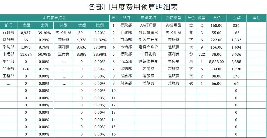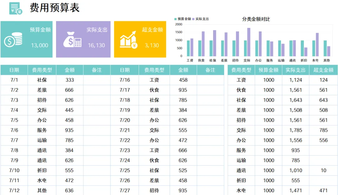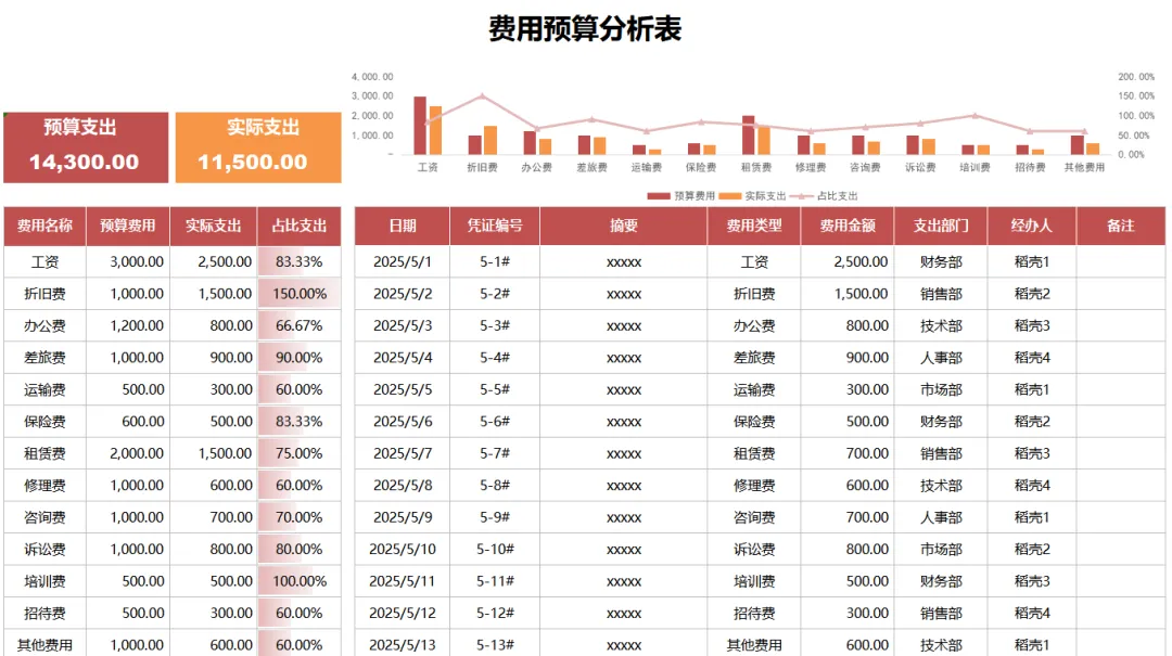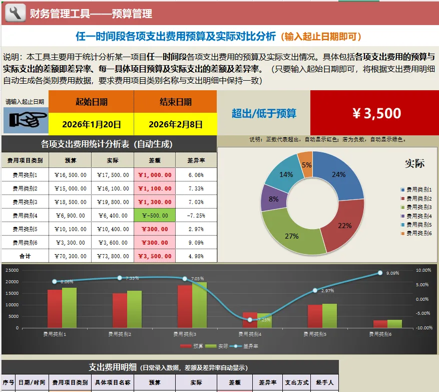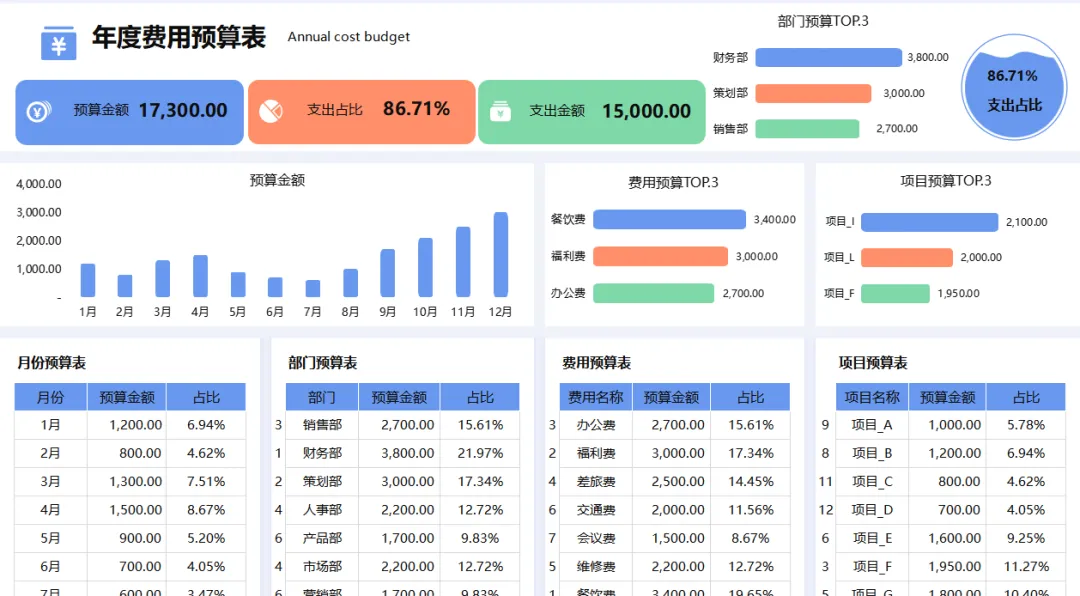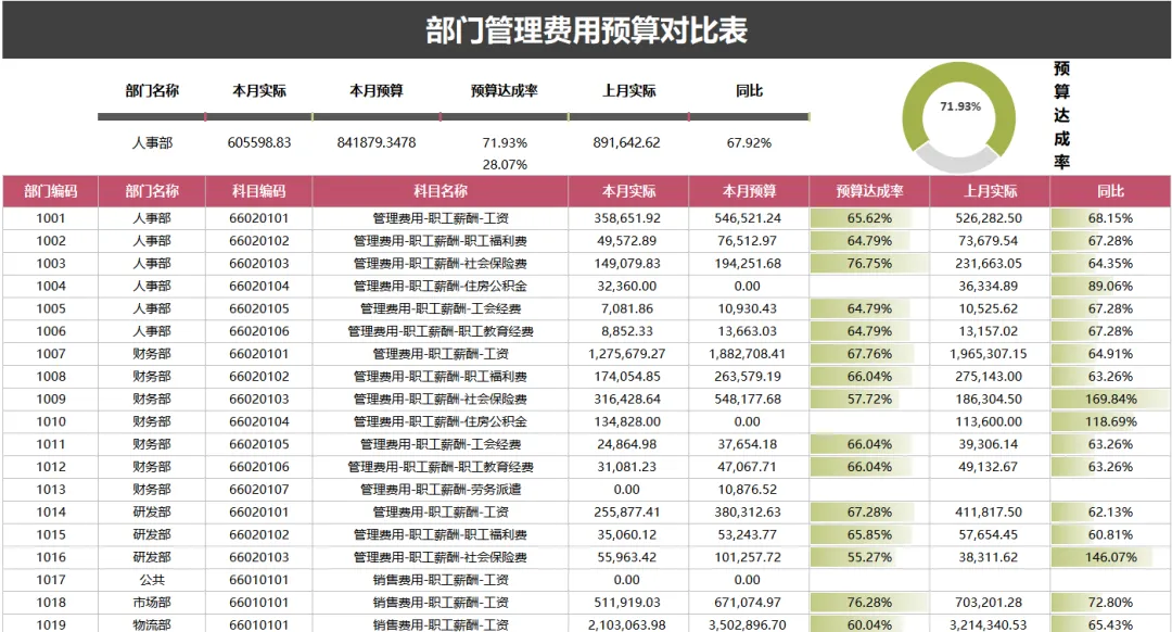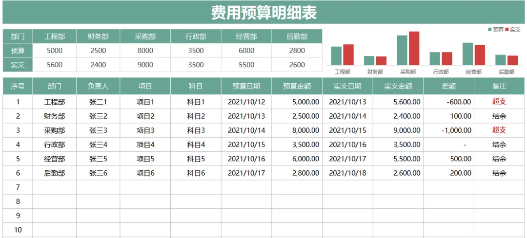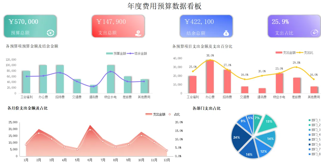 第一次见怎么好用的费用预算表格模板,带可视化预算费用数据分析