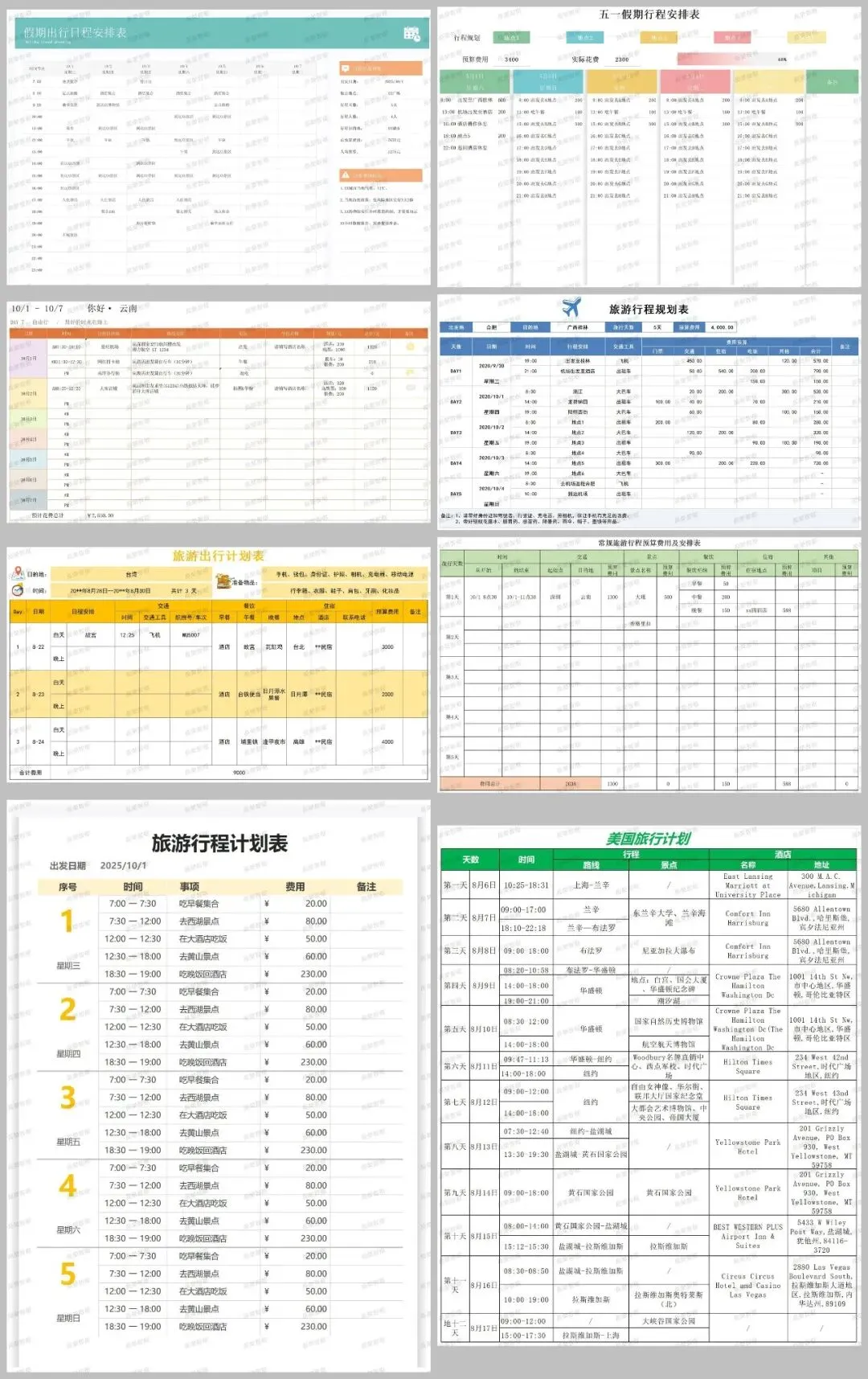 【Excel模板】【链接可直接下载】假期旅游计划表13份 旅游行程预算费用及安排表 旅游攻略 旅游行程安排 旅游行程计划及消费记账分析表