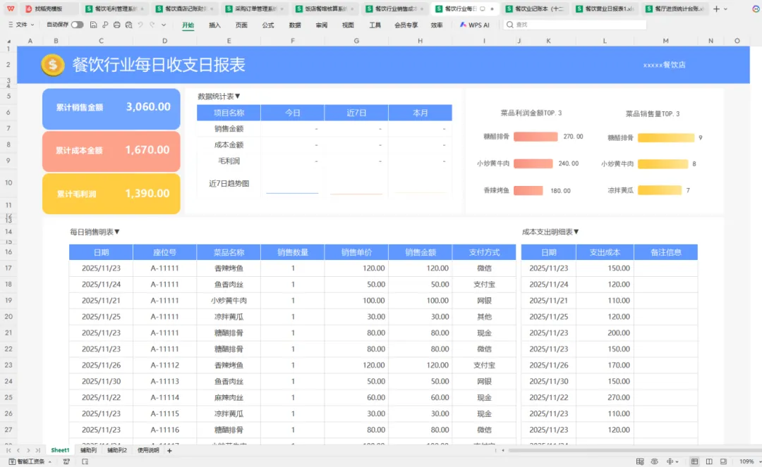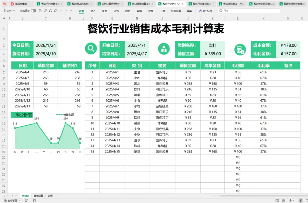 餐饮业财务核算痛点突出,进销存繁杂、食材损耗难统计、收入成本利润核算繁琐,占用会计大量时间。本文专为餐饮会计整理9套专属财务表格模板,全面覆盖进销存管理、收入统计、成本核算、利润核算等核心场景,内置全自动计算公式,无需手动运算,录入基础数据即可自动生成结果,简单易操作、超实用,助力餐饮会计高效完成账务核算,提升工作效率。
