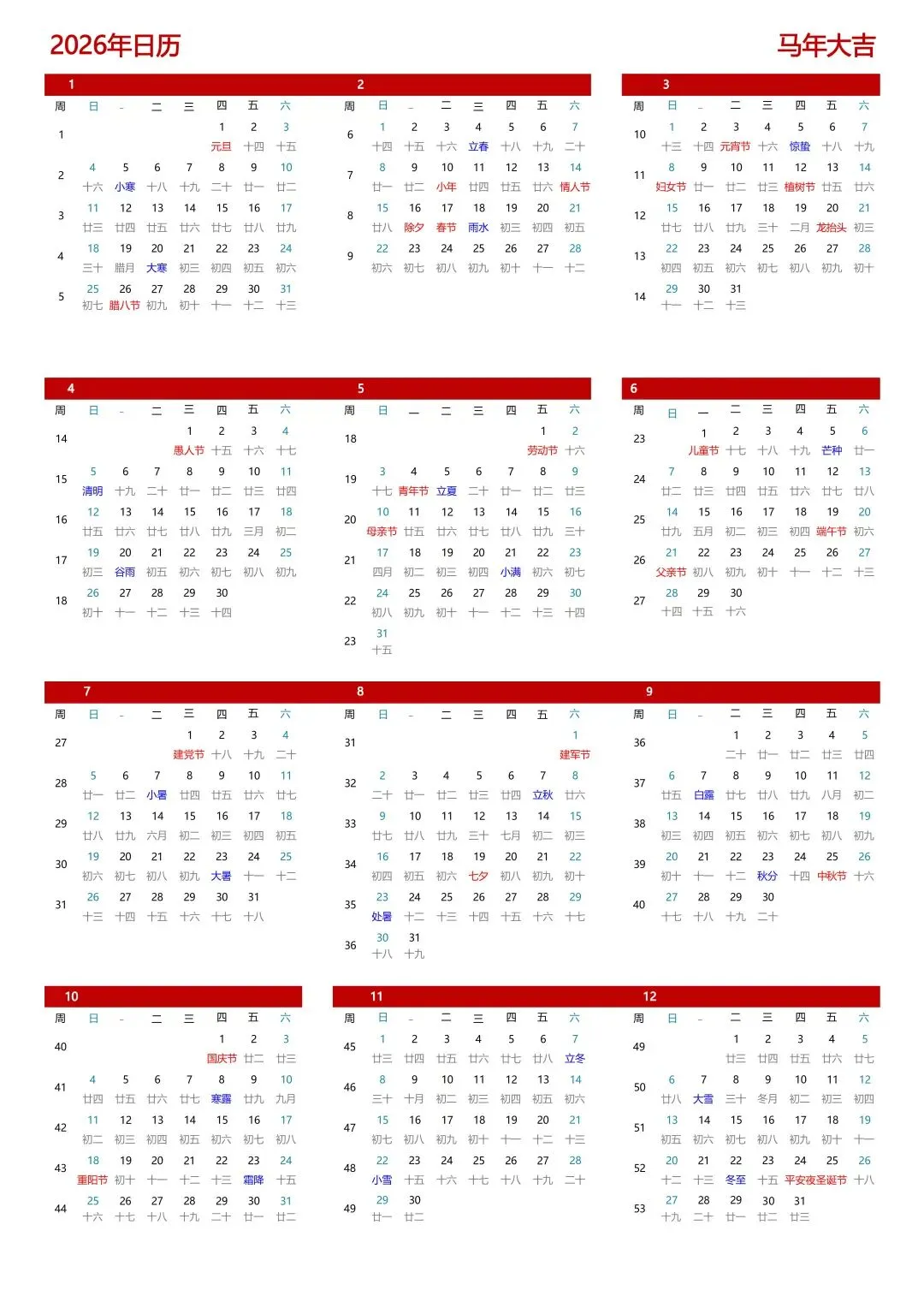 #2026日历计划表可编辑#2026日历空白模板#2026日历计划表打印#2026年日历计划表excel#2026年日历模板打印版#2026年历一张图高清#2026年日历表打印版#2026日历全年表pdf#2026年日历表格模板#2026年历全图可打印