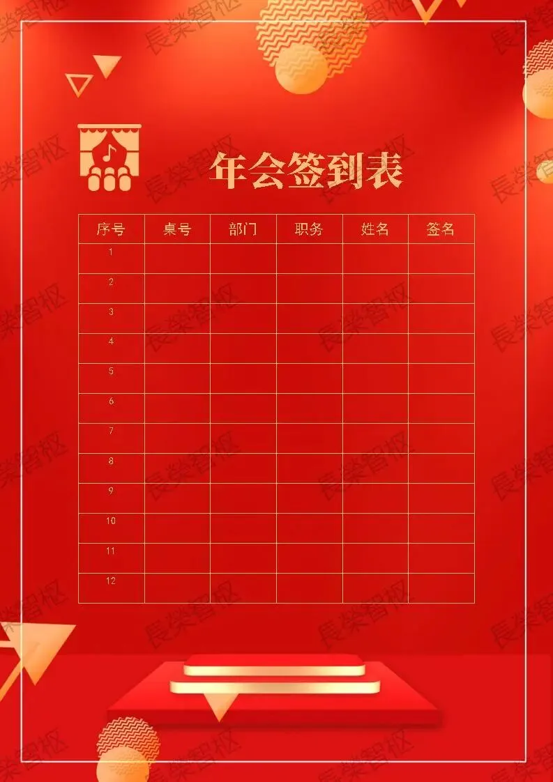 >【Excel模板】【链接可直接下载】【Excel模板】【链接可直接下载】红色喜庆春节年会签到表、活动桌签桌号三角桌牌桌签会议牌姓名牌