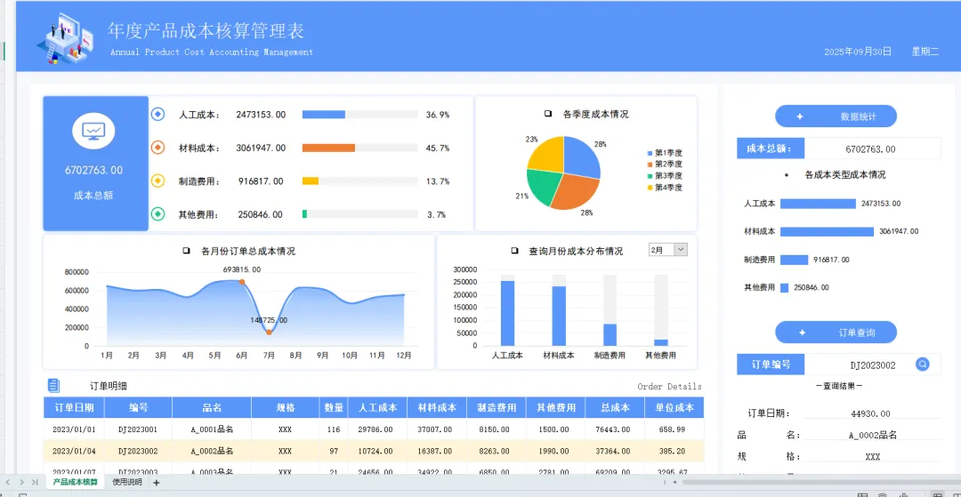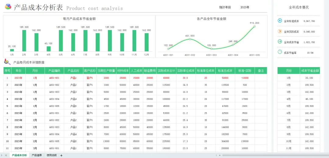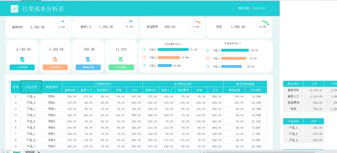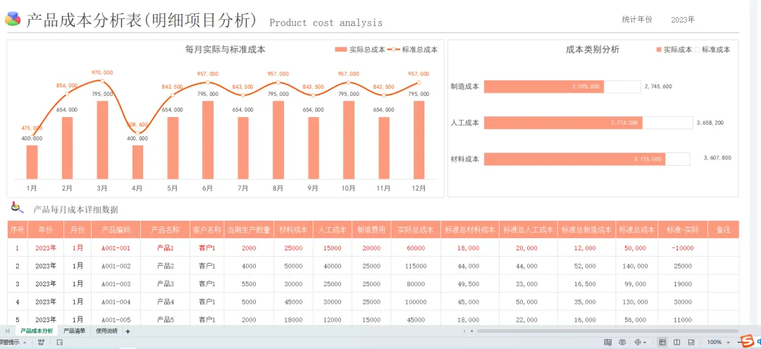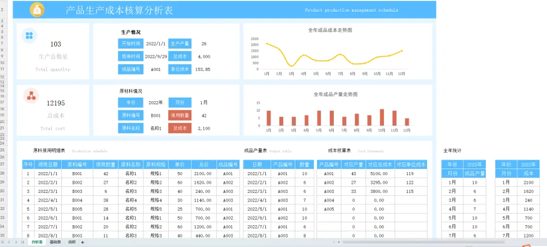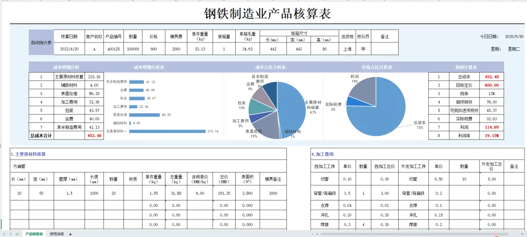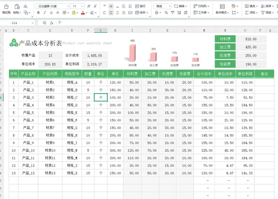 成本核算表格模板(带图表分析)
