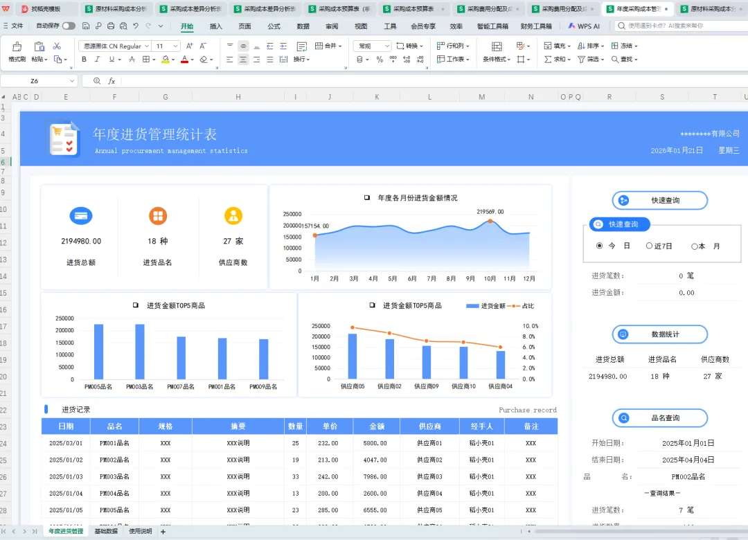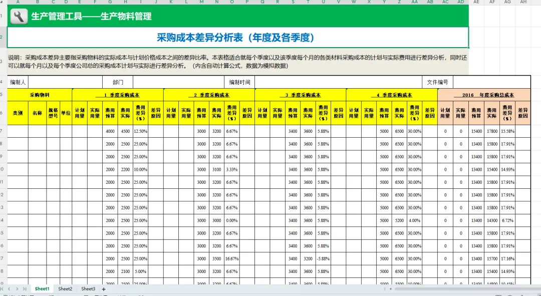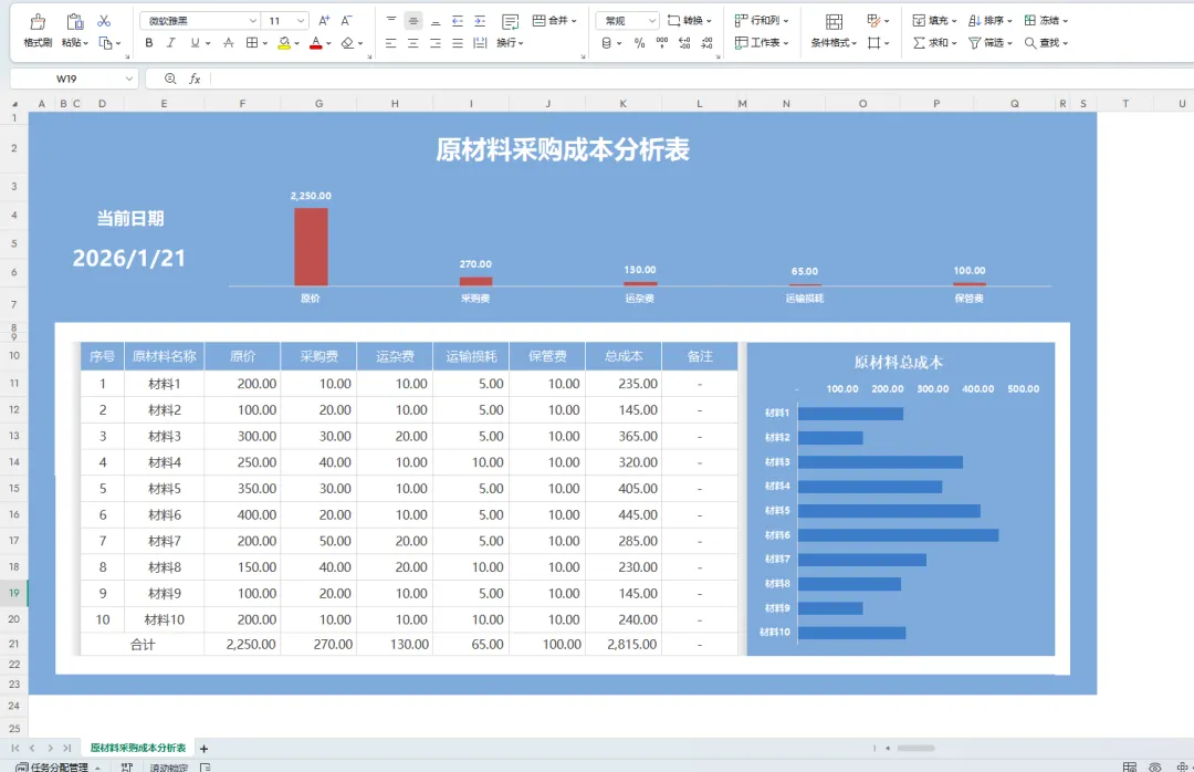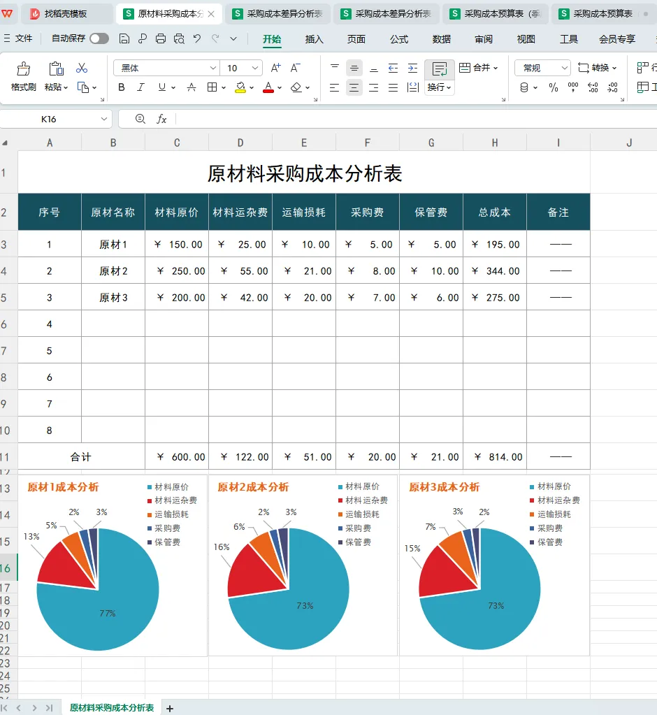 采购成本核算报表:采购成本预算表模板,带公式,套用自动生成采购成本分析表