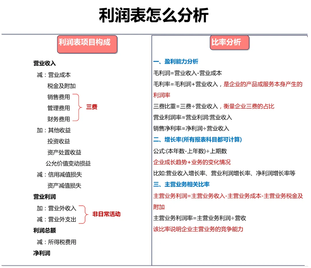 三大财务报表(资产负债表、利润表、现金流量表)之间的勾稽关系是财务分析的基础,通过数据分析反映企业财务状况、经营成果和现金流量的内在一致性。