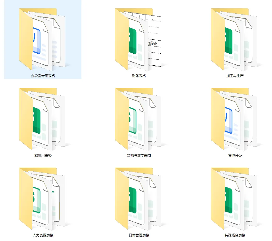 这套资料库精心划分了九大核心类别,包括专业的人力资源表格、精细的财务报表、高效的生产与加工流程单、实用的办公室行政文档、温馨的家庭收支与计划表,甚至还有教师教学、日常管理等特殊场合的模板。